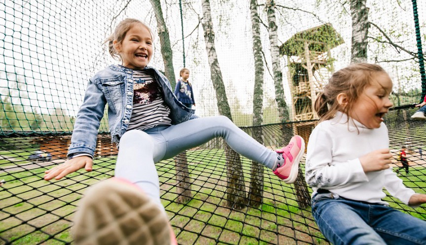 На детскую трассу и аттракцион «Сетчатый куб» допускаются дети от 4 до 14 лет ростом от 110 до 140 см.