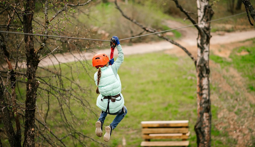 Для самых маленьких экстремалов в парке есть детская трасса с непрерывной страховкой,